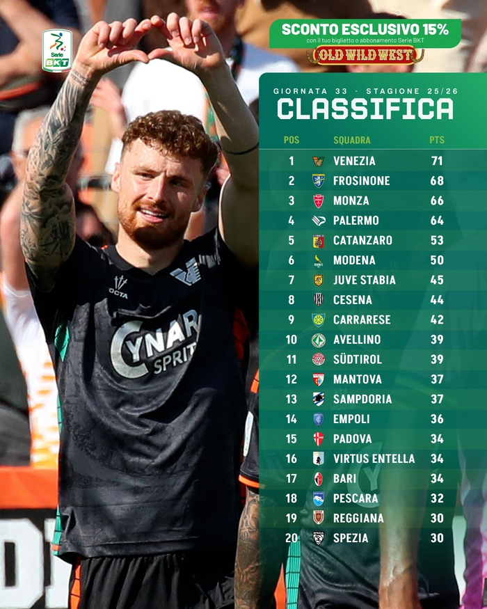北美世界杯-意乙33轮积分榜:威尼斯71分领跑,巴勒莫第4尤维斯塔比亚第7|意乙积分榜|菲利普-因扎吉|ac米兰|阿巴特|名宿_新浪体育_新浪新闻